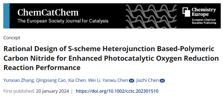 近日,冰球官网轻化与材料学院科研团队在《ChemCatChem》发表了一篇综述论文,该论文题目为《Rational Design of S-scheme Heterojunction Based-Polymeric Carbon Nitride for Enhanced Photocatalytic Oxygen Reduction Reaction Performance》。该期刊影响因子4.5,为JCRQ2期刊。本论文由冰球官网轻化与材料学院科研团队的张云霄博士(第一作者)、曹庆翔博士、陈燕舞教授(通讯作者)、广东省科学院化工研究所的陈佳志博士(共同通讯作者)等联合撰写,冰球官网为论文的第一单位。该研究得到广东省基础与应用基础研究、广东省教育厅重点领域专项、国家自然科学基金等项目的支持。