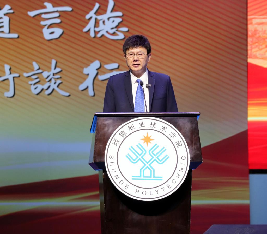 学校党委书记李先祥致辞,向2024级新同学表示祝贺和欢迎。他表示,顺职院地处涌动着创新发展澎湃动力的粤港澳大湾区、地处以“中国制造”卓越品质闻名遐迩的佛山顺德,不仅有着花团锦簇、如诗如画的“外在美”,更有着自信自强、臻善臻美的“内在美”,感谢同学们选择顺职院作为梦想启航的新起点。通过分享优秀校友的故事,李先祥勉励同学们要相信职业教育、相信顺职院、相信自己,相信职业教育前途广阔、大有可为,只要有梦想、肯奋斗,每个人都能书写自己的不凡人生。“愿每位同学都能像悟空一样,在成长的道路上‘降妖除魔’,在知识的海洋里‘大闹天宫’,在技能的赛场上‘修成正果’,最终蜕变成为一个有担当、有能力的‘齐天大圣’!”李先祥围绕“我是谁?”“为什么来顺职?”“来顺职做什么?”三个问题向新生提出要求,强调要认识自己,才能做出正确的选择,实现自己的价值;要敢于追梦,明大德、成大才、树大志;要学会自律,多读书、多思考、多实践,全力加速、蓄力、赋能,成为更加全面、身心健康的自己。“愿你们在顺职的沃土上茁壮成长,用智慧和汗水书写属于自己的精彩人生!”