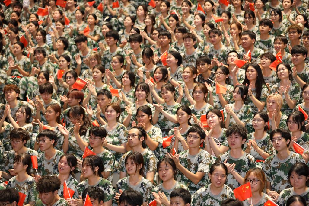 现场进行了军训授旗仪式,李先祥为各学院授旗。各学院新生高喊各自口号,声音响彻云霄,展现了昂扬向上的斗志、坚韧不拔的毅力和积极向上的精神风貌。